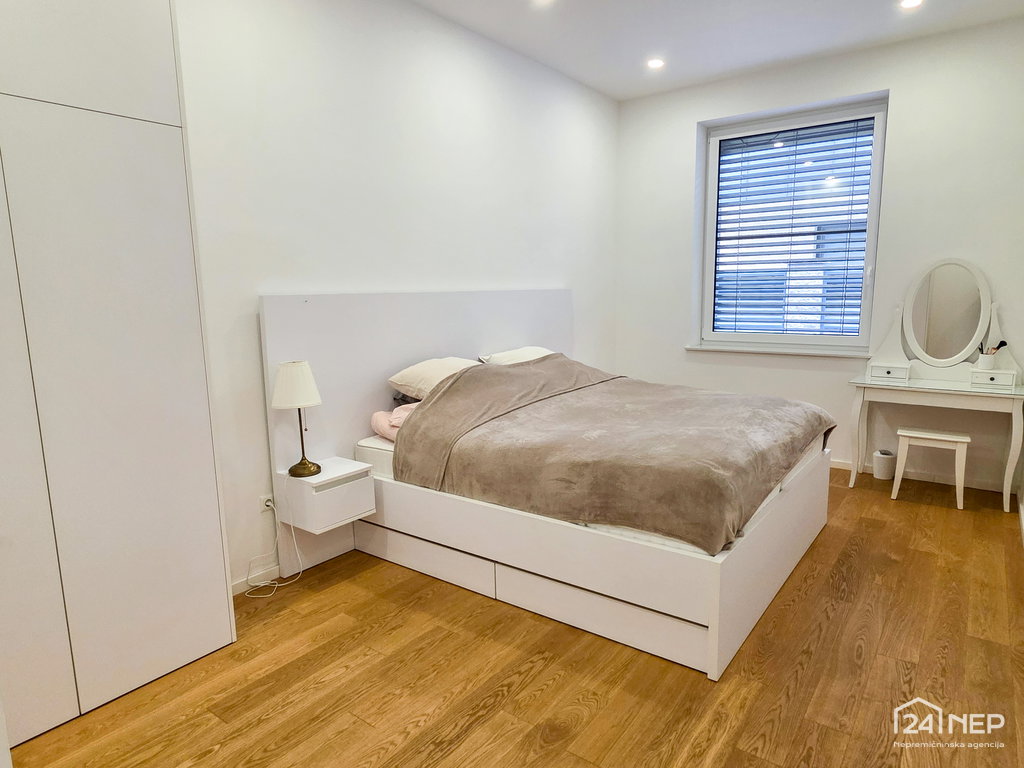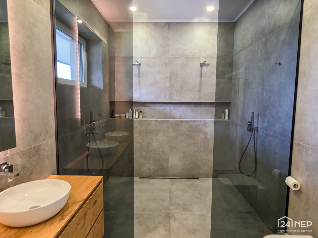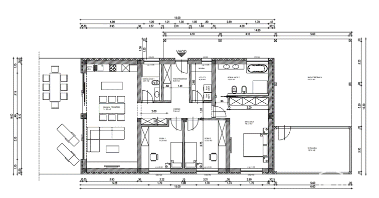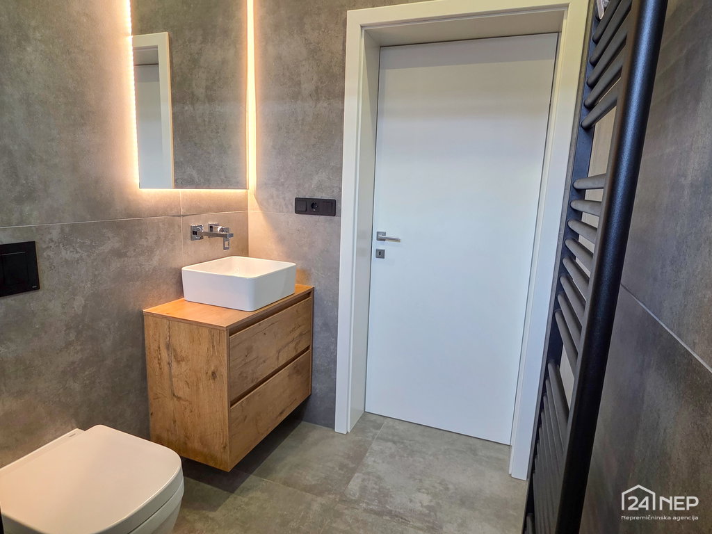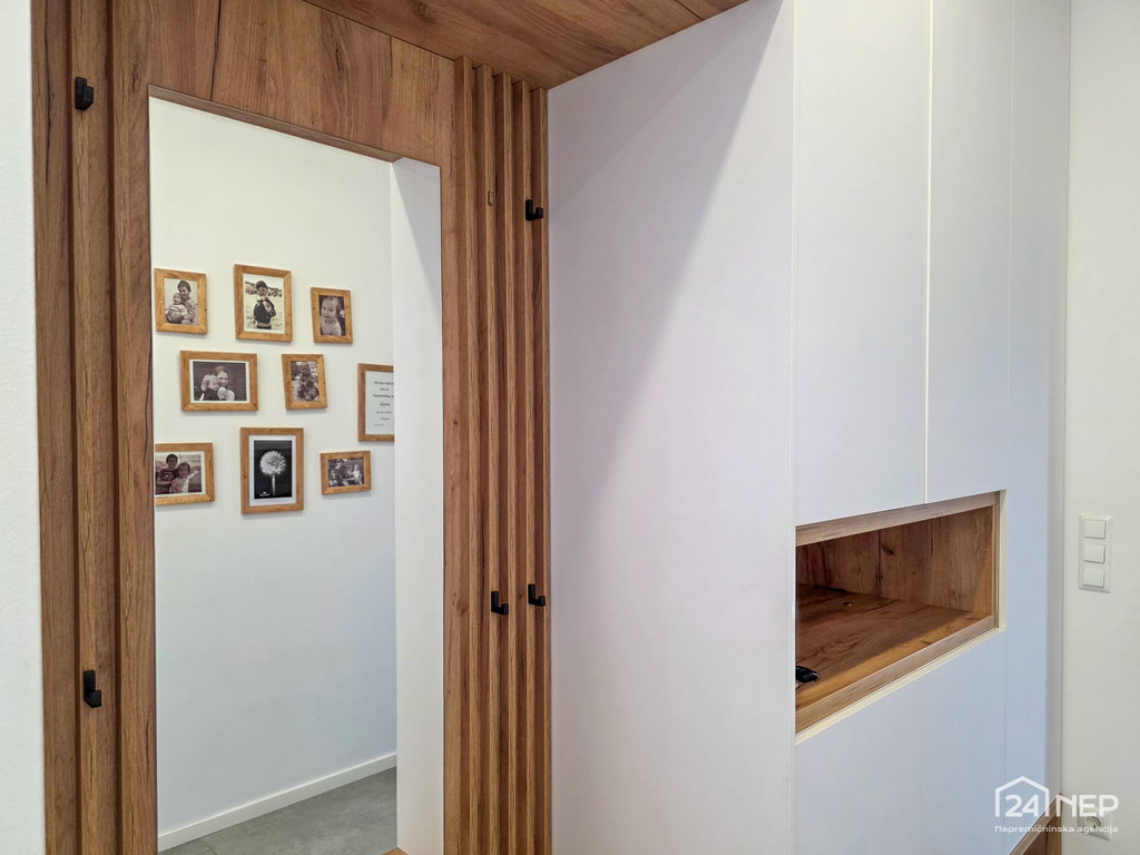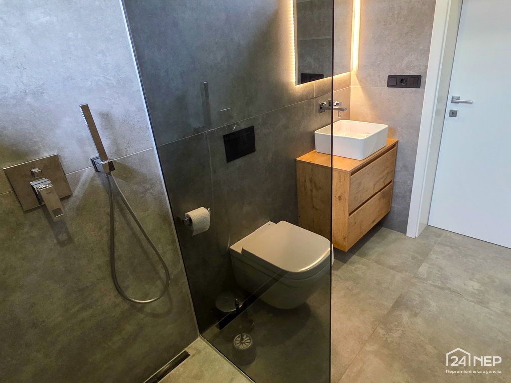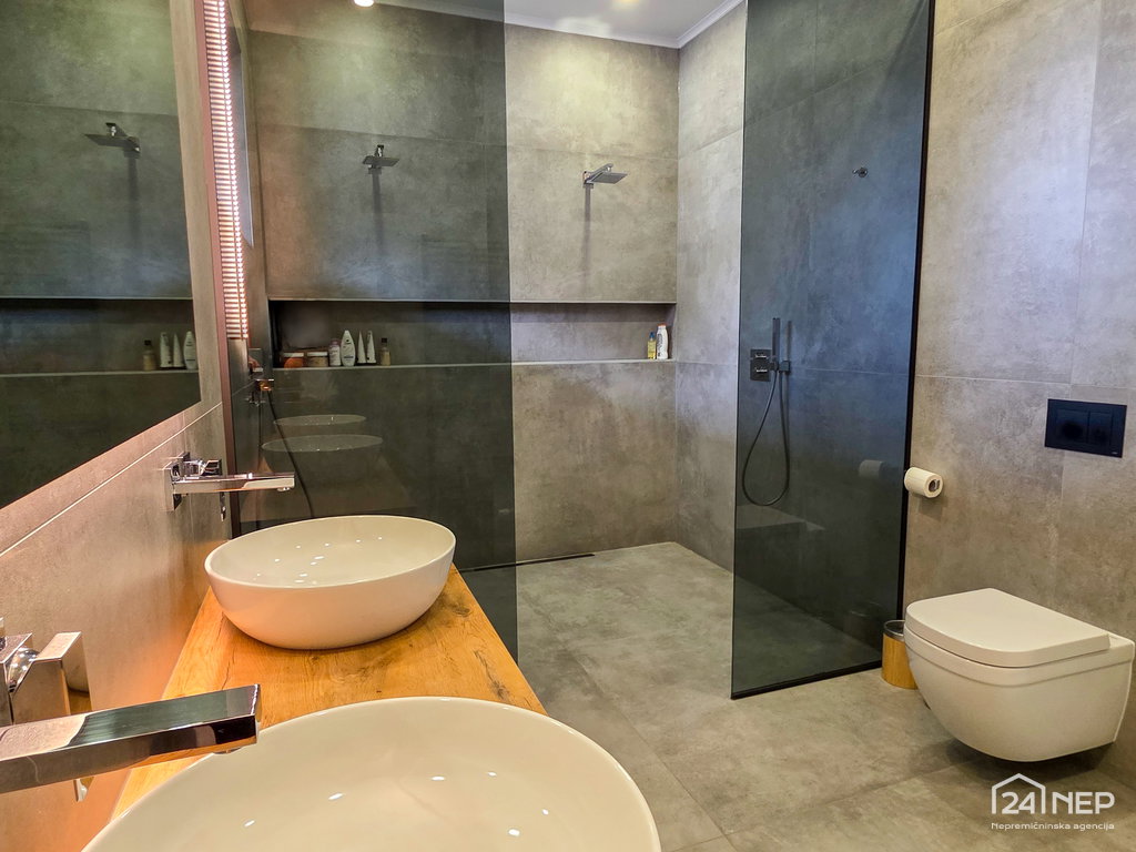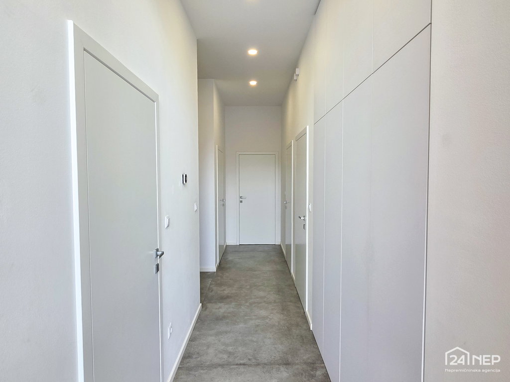 - Razporeditev: predprostor, hodnik, 2x kopalnica, kuhinja, jedilnica, dnevna soba, 2x otroška soba, spalnica z garderobo, utility.