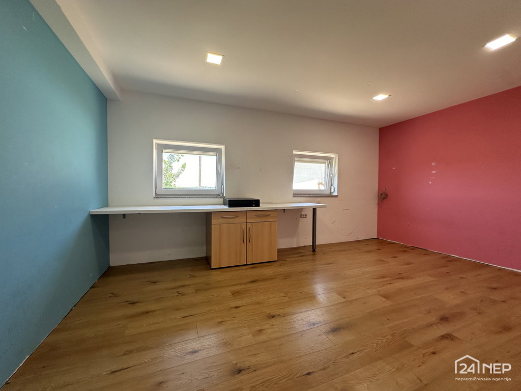 Razporeditev: predsoba, hodnik, kopalnica z WC, dnevna soba z jedilnico in kuhinjo, spalnica, otroška soba, utility
