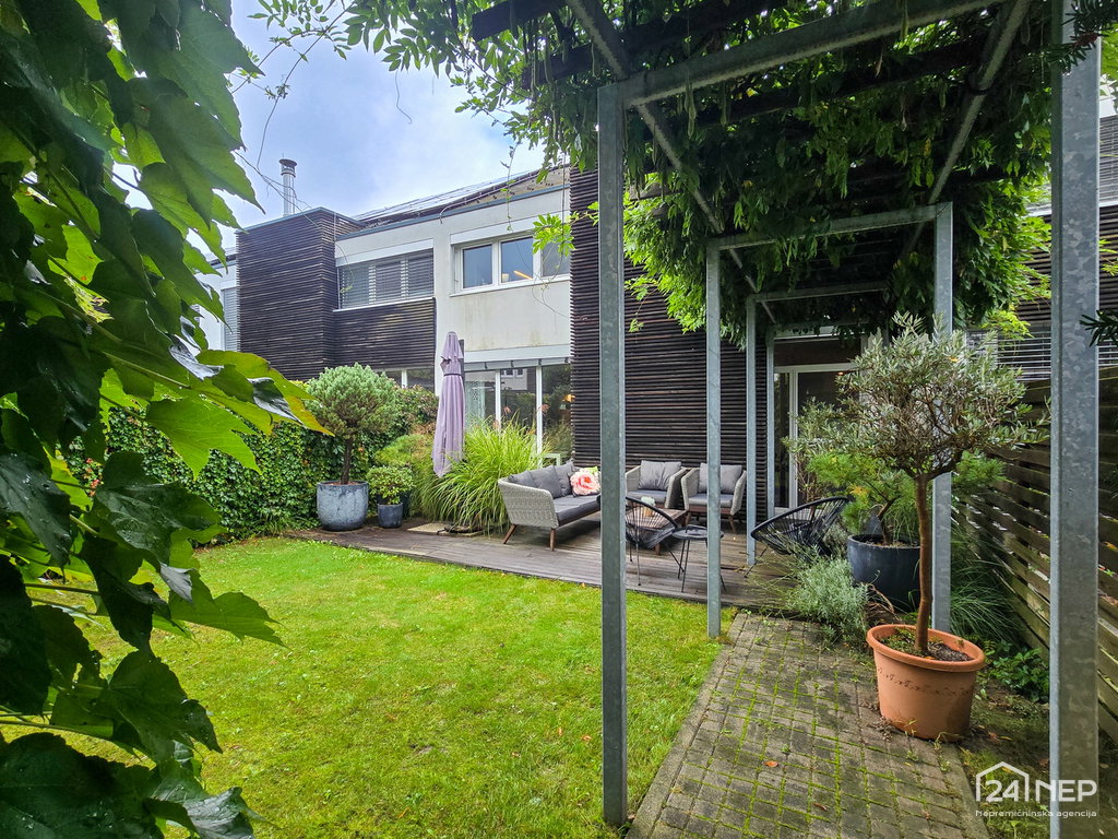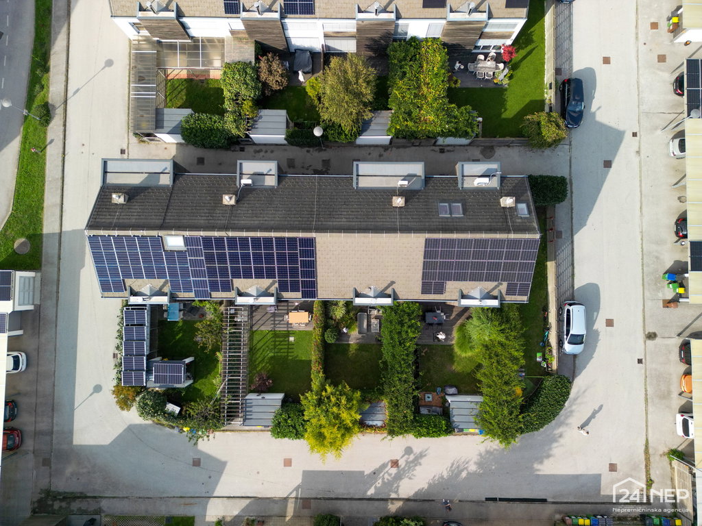 Dodatno: zelen ATRIJ z vrtno shrambo, dodatna shramba pred vhodom v hišo, dve lastniški parkirni mesti pod nadstreškom.