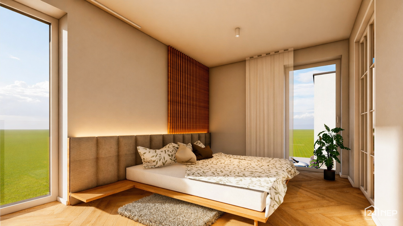 - Spalnica 14,40 m2 in garderoba 7,30 m2