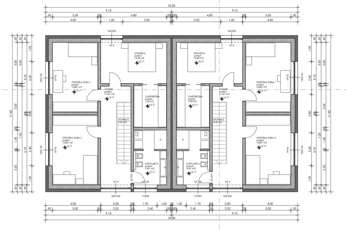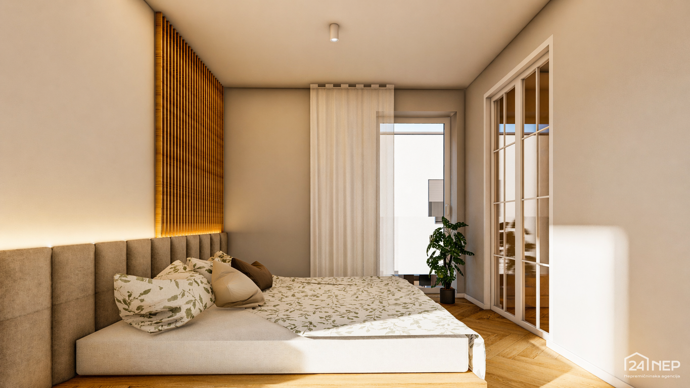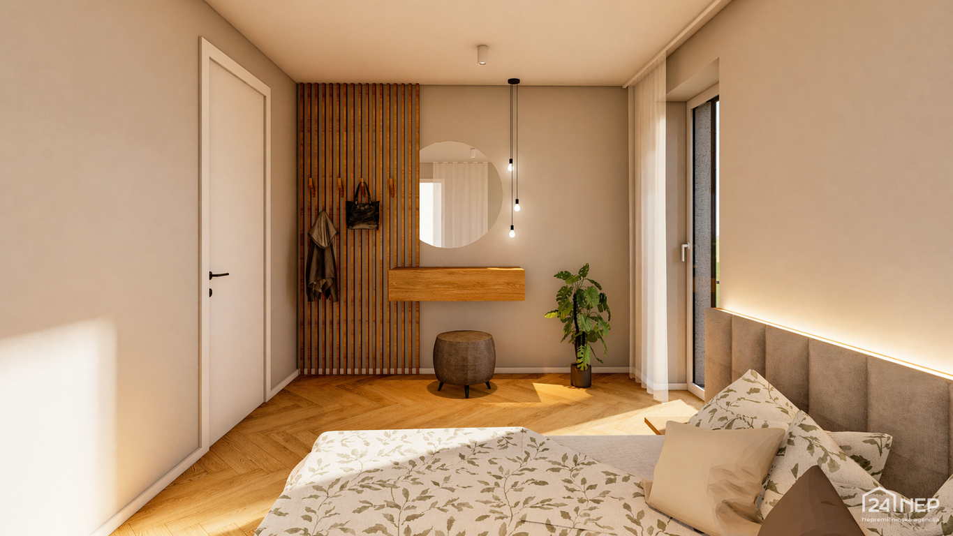 - Spalnica 14,40 m2 in garderoba 7,30 m2