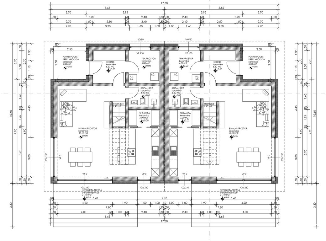 - Tlorisne površine: pritličje 62,20 m² / nadstropje 76,30 m² / terasa 21,10 m2