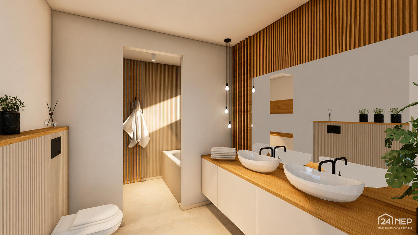 - Ogrevanje: talno, s toplotno črpalko Panasonic