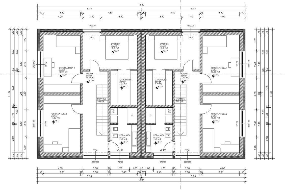 - Tlorisne površine: pritličje 62,20 m² / nadstropje 76,30 m² / terasa 21,10 m2